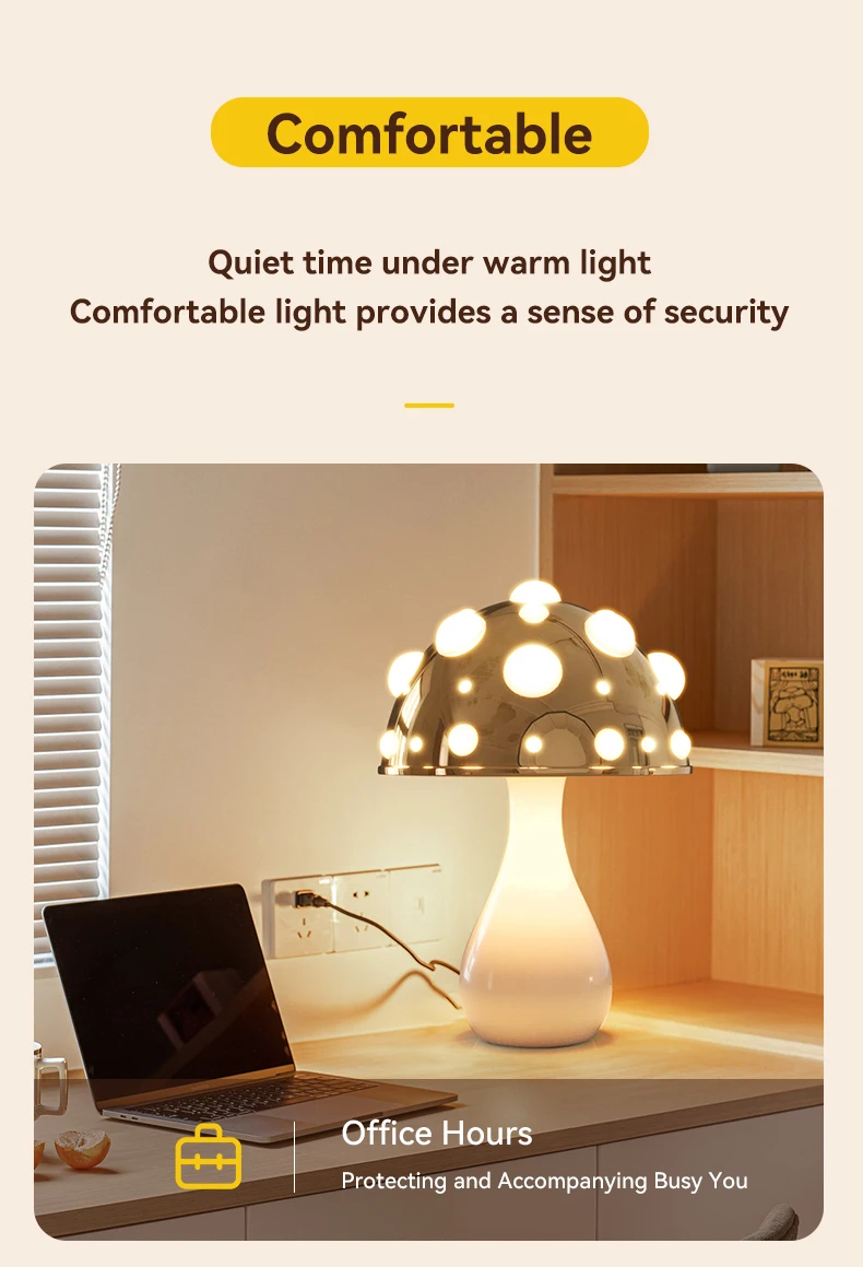 This modern gold mushroom lamp adds instant style and comfort to any bedroom, dorm, or study space. Perfect for late-night reading, relaxing, or creating that TikTok-worthy aesthetic everyone loves.