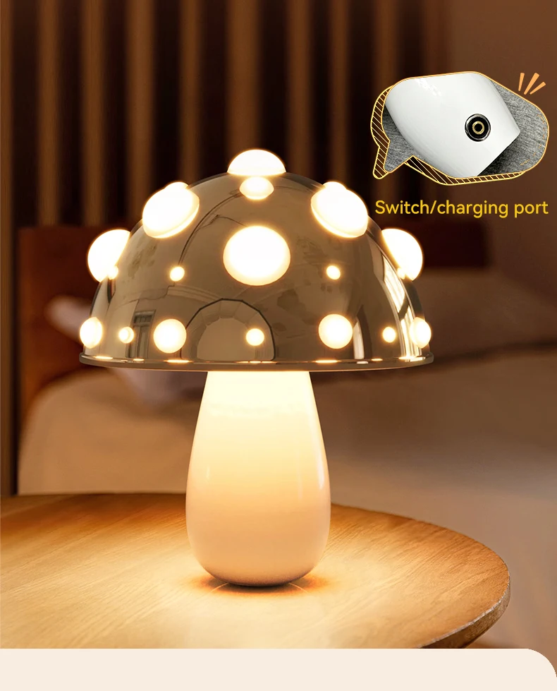 Mushroom Lamp - Gold LED Night Light for Bedroom